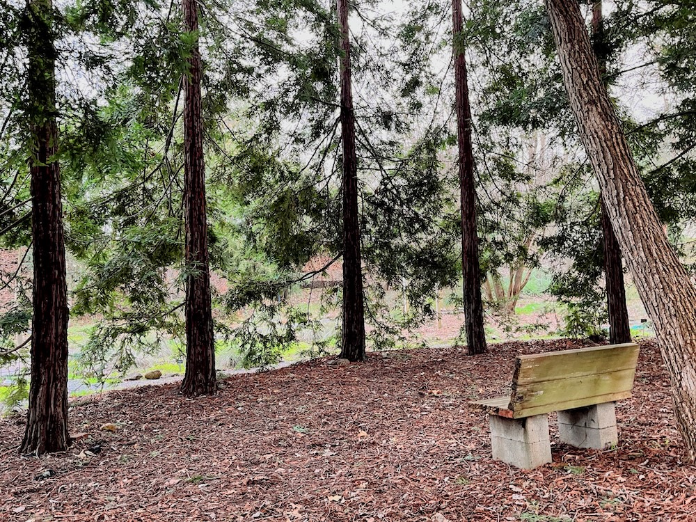Bench in the redwood grove at Martha Walker Gardens, NapaThe garden invites school groups, hikers, and natural lovers to explore. Almost 200 different species have been planted. I especially enjoyed the little redwood grove. Even if it is just a small part of the park, the garden has a lot of paths and benches to enjoy peace and quiet. The Napa-Solano Audubon Society donated fruit trees to attract birds.