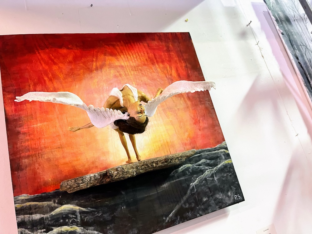 Jean also took me around to see some of the artists of the Mare Island Art Studios works. There are a variety of media being displayed, from pottery to mixed media. I was especially impressed by Priscila Soares mixed media work where she used wings on the ears of a woman to illustrate her own experiences of being hard of hearing.